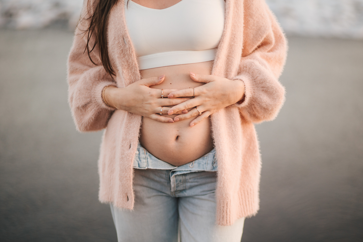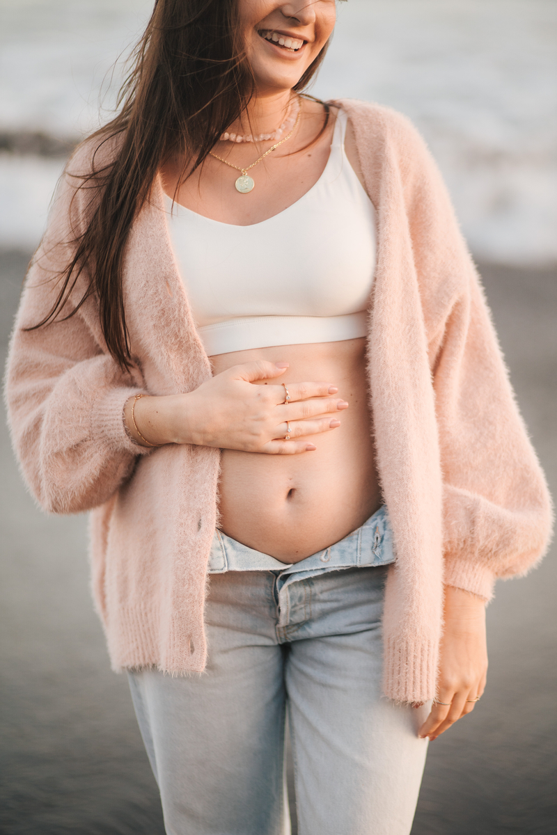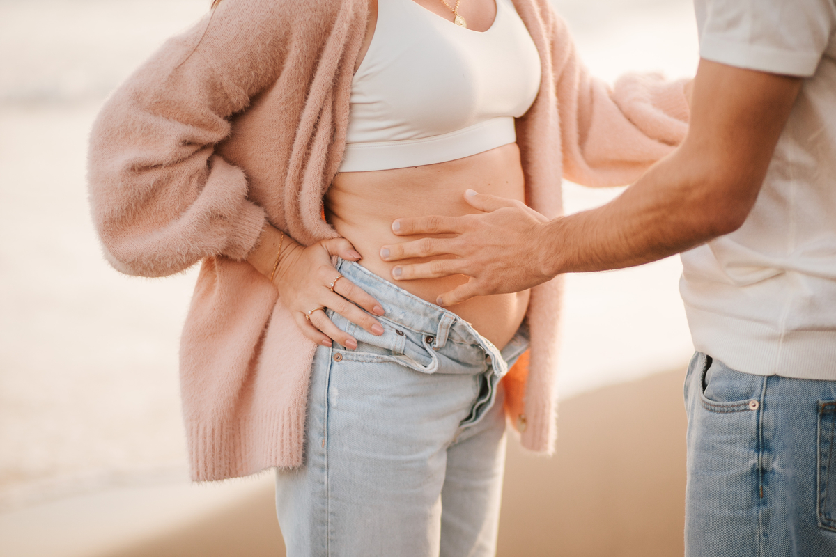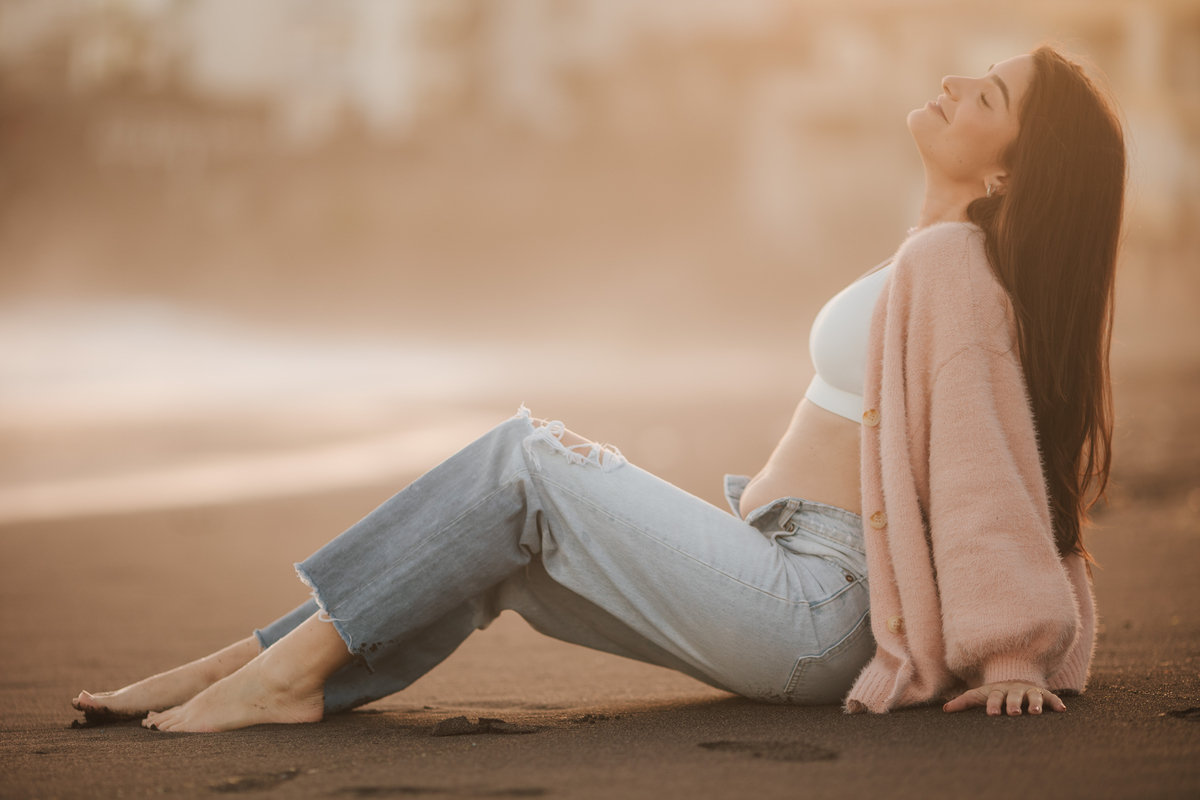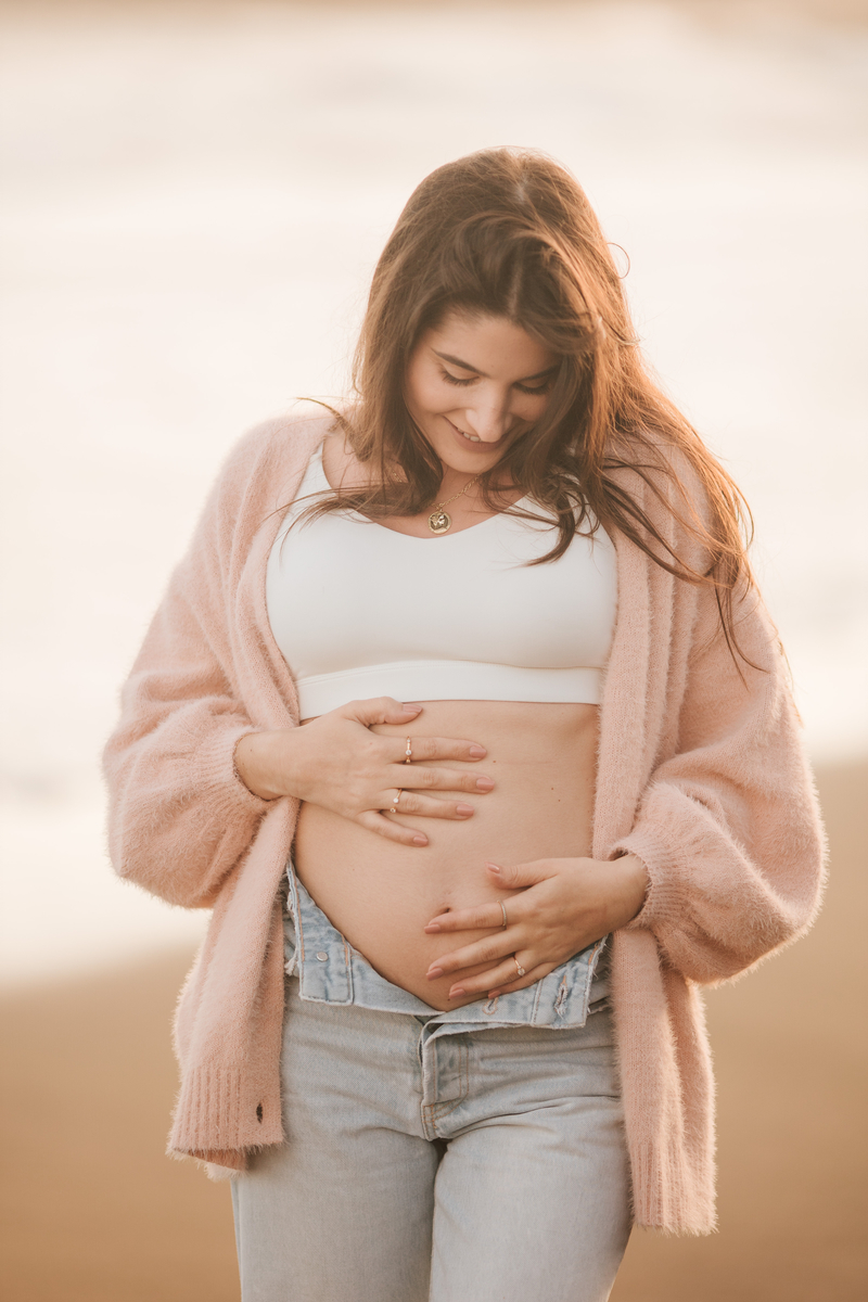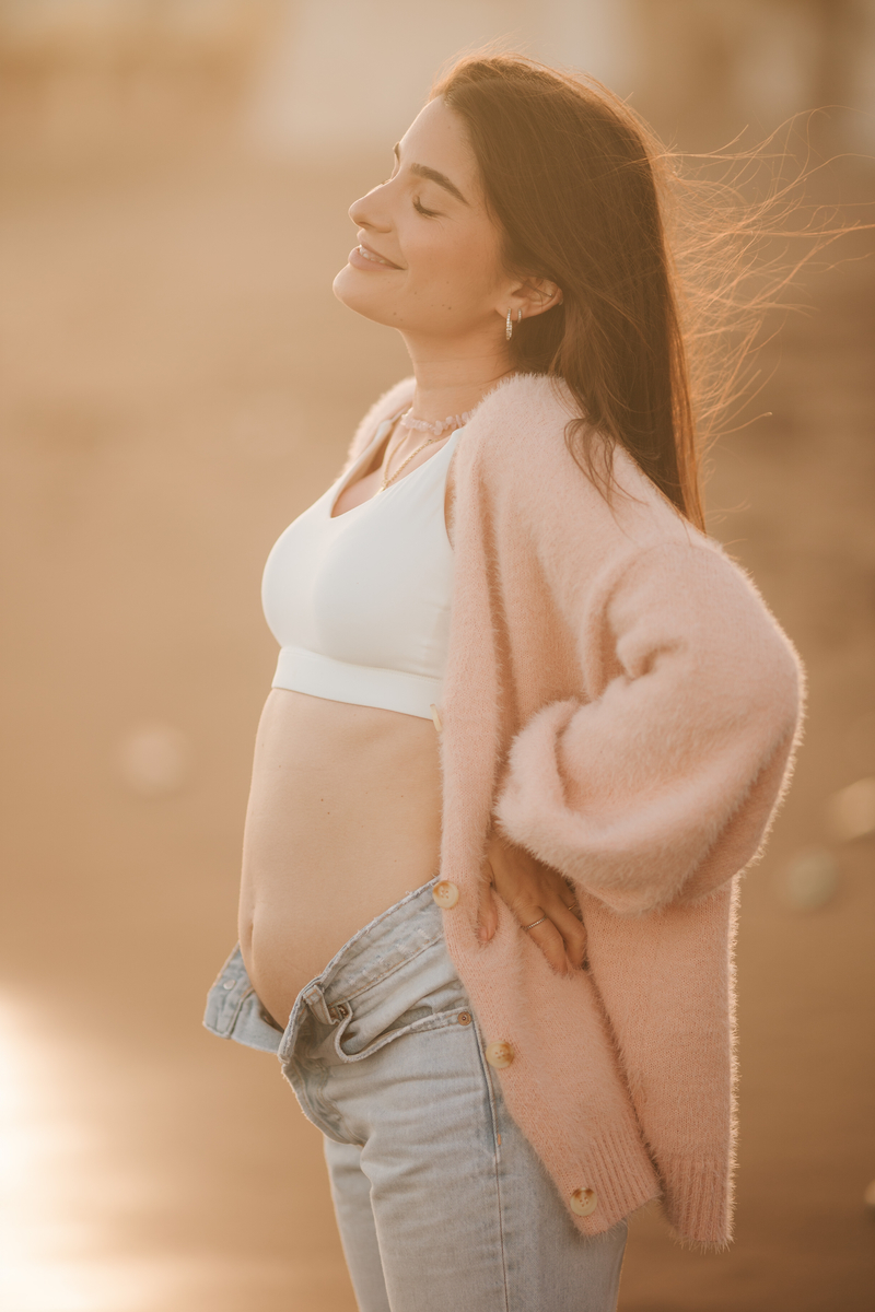 Uma bela sessão fotográfica de gravidez realizada na Praia das Milícias, com um magnífico pôr do sol como cenário. Os pais, Inês e o seu parceiro, encontram-se descontraídos, naturais e cheios de amor, aproveitando um final de dia maravilhoso.